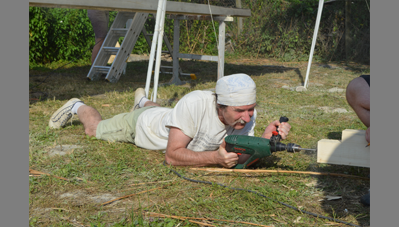 A helyiek időnként megálltak vagy bejöttek, kíváncsiak voltak, hogy haladunk. A falu érdeklődése folyamatosan végigkísérte a nyitott kapuk mellett folyó építést, és mint a népmesékben, szájról szájra terjedtek a hírek. Ezek a pár perces látogatások,