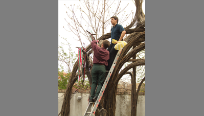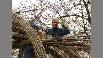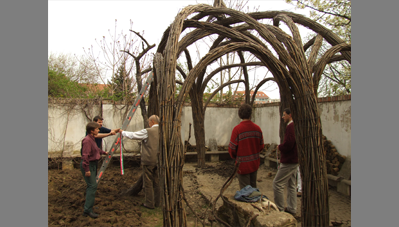 A pergolát a kétezres évek közepén fanyűvő rovarok támadták meg és összeomlott. Makovecz erkélye a kert fölé nyúlt, így min-dennap láthatta az romokat. A helyére fűzépítményt tervezett, ami 2007-ben készült el. Az építők főleg vándorok voltak, kiegészülve házbéli és „külsős” segítőkkel.