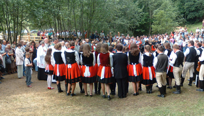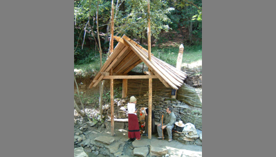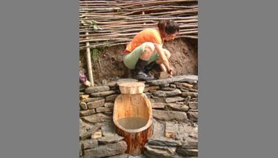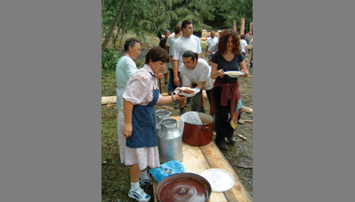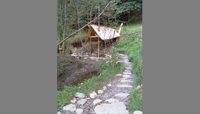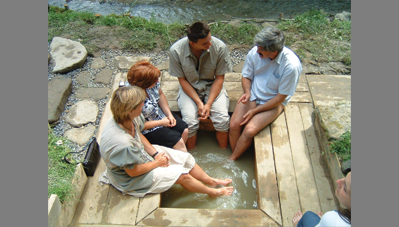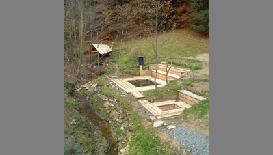 A negyedik kalákát a Kászoni-medencében rendeztük, egy patakparti kis égerliget gyógyforrásai mellett. Először fordult elő, hogy magánember hívott minket kalákázni, azzal a kitétellel, hogy fürdőjét mindenki szabadon használhassa. A kalákábanmegépült forrásház vize segít a cukorbetegeknek, a fürdőmedence vize akti-vizálja a nyirokrendszert, míg a lábáztató medence segít a baleseti sérülések utókezelésében. A patakon átívelő függesztett pallóút fölé fűzépítmény került, öltöző, filagória és WC is épült. A legnagyobb küzdelmet a patak elterelése okozta. A pihenőhelyet padokkal, szemetesekkel rendeztük be, táblákat festettünk. A hely szentségét és gyógyerejét egytölgyfából faragott kászoni kereszt erősíti. A kalákások sokat tanultak a helyi mesterektől, a helybéliek pedig elcsodálkoztak, hogy a kalákázók milyen lelkesedéssel és kitartással dolgoztak esőben és napsütésben.