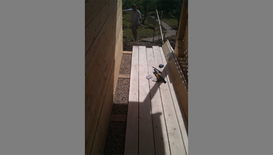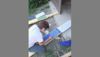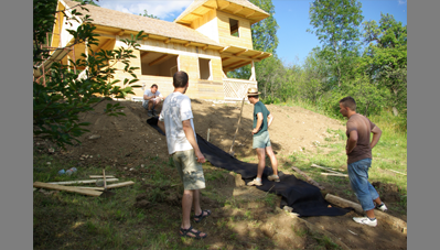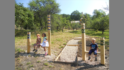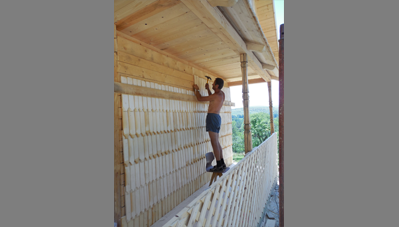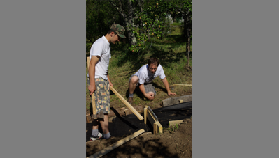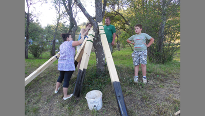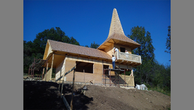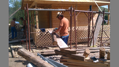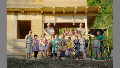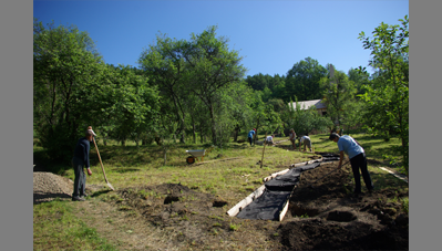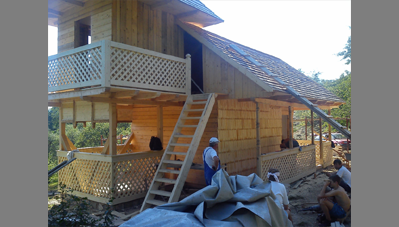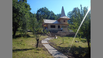 „táj-olvasó parkot” alakítottunk ki. A komplex kulturális emlékhely így átélhetővé teszi a falu szellemi örökségét saját lakosai és igényes látogatóközönsége számára. Az újjáépítést Miháltz István, építész-dédunka tervezte és művezette, a munkában a tiszteletes, helyi asztalosok és egy magyarországi csapat vett részt kis létszámú családias kalákában 2013 júliusában. Előzetes tájvizsgálatokat tájépítész hallgatók és épületfelmérést a BME-s hallgatók végeztek.