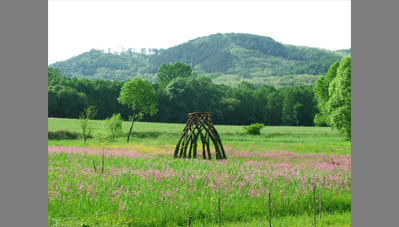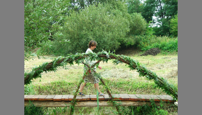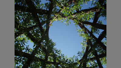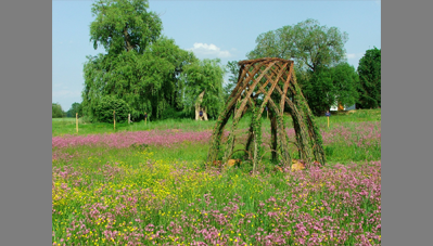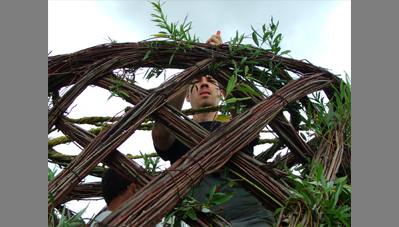 Az elkészült fűzkupola a kert élő építményévé vált.