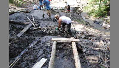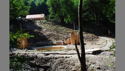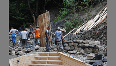 A kalákák tizedik évfordulójára rendezett konferencián arra kértek minket, hogy menjünk Kovászna megyébe kalákázni. A sok lehetőség közül Bodokra esett a választás, ahol fáradhatatlan, közösségéért felelős polgármestert, jól szervezett faluközösséget ismerhettünk meg. Öröm volt együtt dolgozni, együtt kirándulni és beszélgetni. A nagyobb faépítmények kivitelezését a helybéli mesteremberek vállalták fel, nekünk a terepmunka jutott. A csupaszon maradt rézsűket gyeptéglákkal borítottuk, amelyek egy év alatt teljesen benőtték a domboldalakat. A mára elhagyott borvízpalac-kozó helyén népi gyógyfürdőt építettünk, a patak mentén Kneipp kúrahelyet alakítottunk ki. Játszóteret, közösségi találkozópontokat építettünk. A forrásokat kitisztítottuk és újrafoglaltuk, és közben áthatott minket a bodoki hegyek tiszta levegője, és befogadott a bükkös barátságos tája.