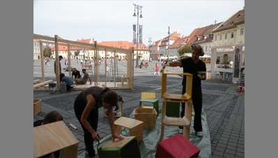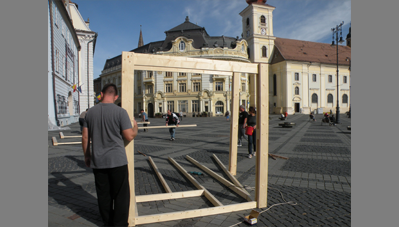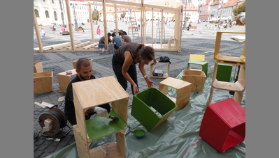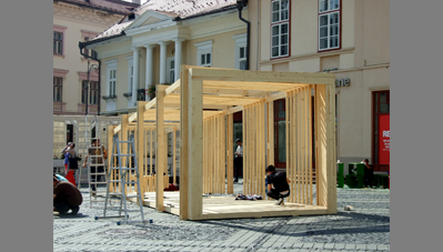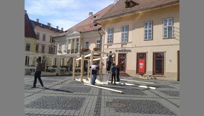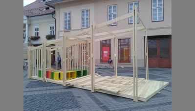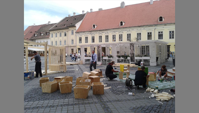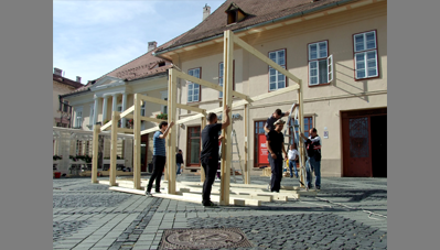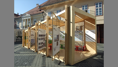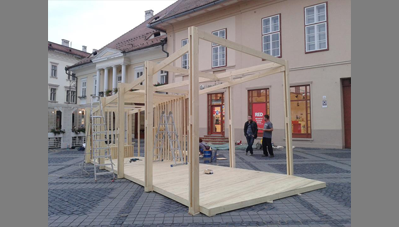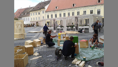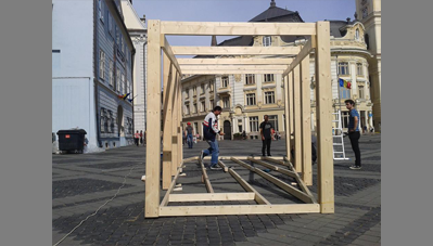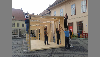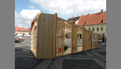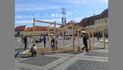 Az urbán telesCOOP pavilon a Heritas alapítvány felkérésére készült el, amit Nagyszeben főterén állítottunk fel, hogy segítsük a város fenntartható fejlődését.
